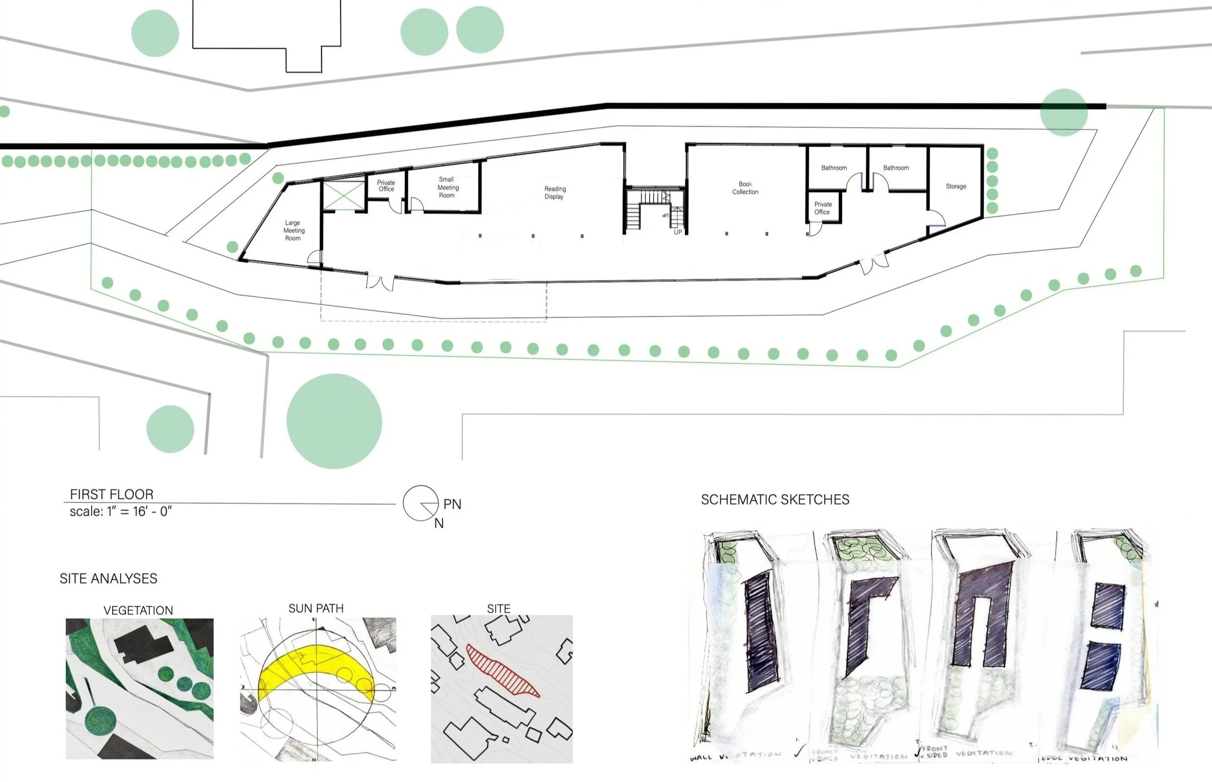 For this project we were asked to design a archive library for artist books with book collection spaces, classrooms, children areas, offices, and meeting rooms. Our site was in Lacoste, France with a sensational view of the beautiful hills of the countryside of France, so I really wanted to take advantage of the view by having lots of windows and outdoor spaces and patios for observation.