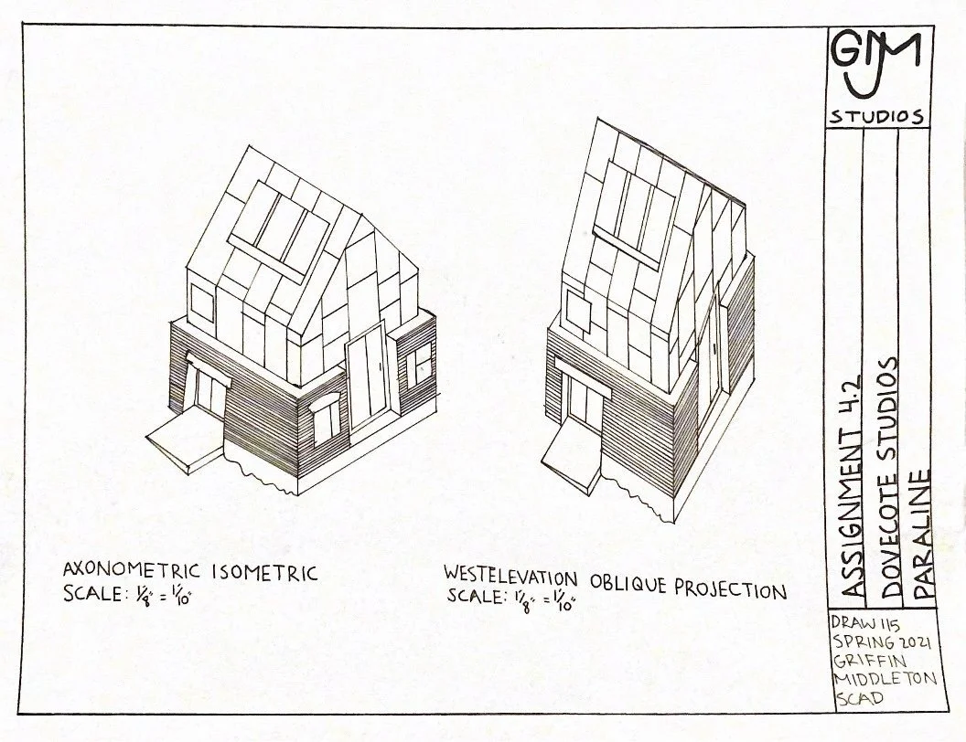 This project is from my ARCH 100 course. This class introduced us to floor plans, section plans, elevation plans, site plans, and perspective drawings. We also learned how to properly label plans with logos, scales, and titles.